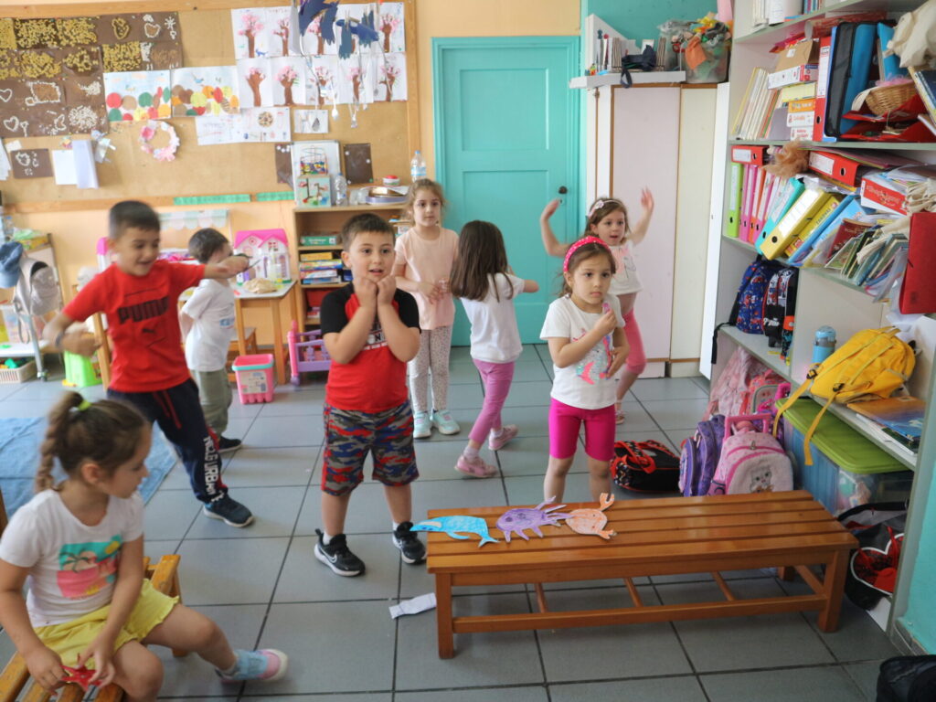 Διάβασαν το παραμύθι της Γιορλάντας Τσιρώνη <η ΈΚΠΛΗΞΗ>. Μετά έφτιαξαν τους ήρωες του παραμυθιού και έκαναν δραματοποίηση. Στο τέλος οι ήρωες χόρεψαν με κέφι