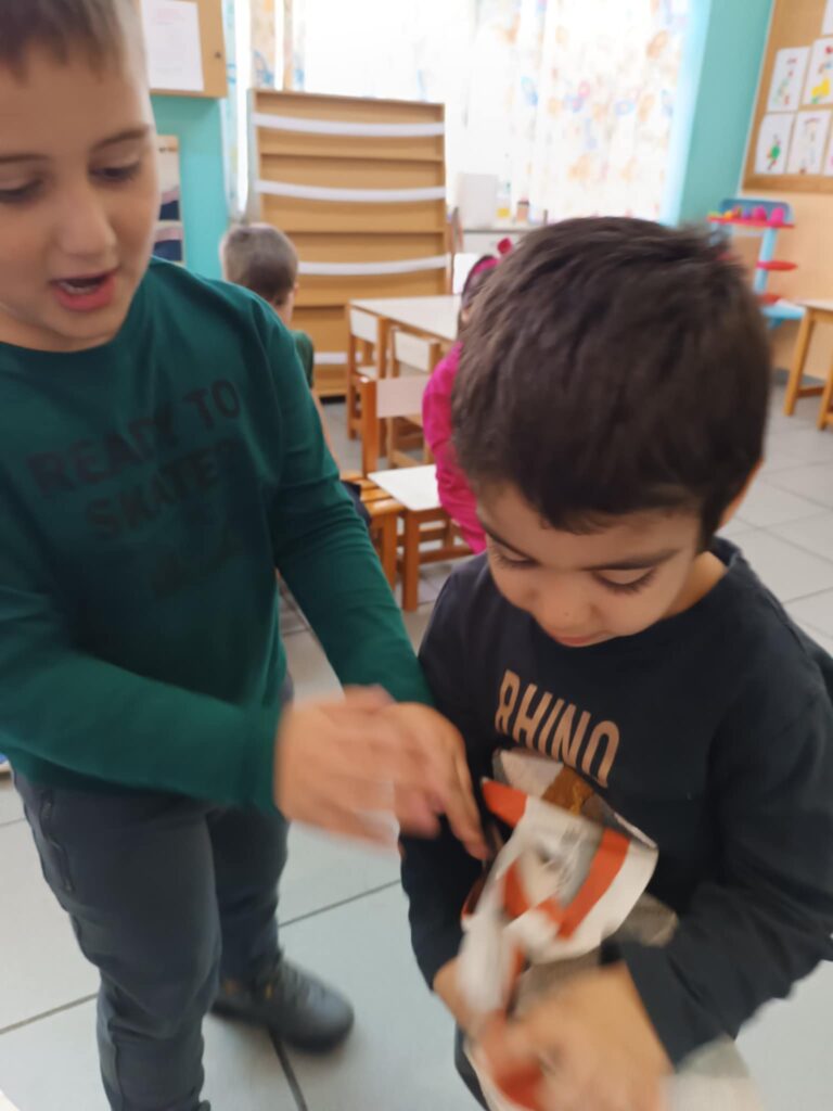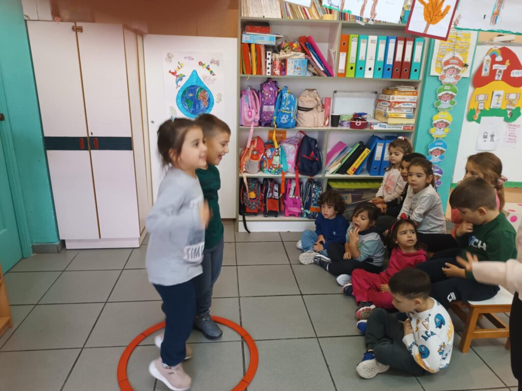 Στόχος: Καλλιέργεια δεξιοτήτων συνεργασίας και επικοινωνίας. Δραστηριότητες: – Παιχνίδι «Η μπάλα της φιλίας». – Ομαδική κατασκευή με ανακυκλώσιμα υλικά. –