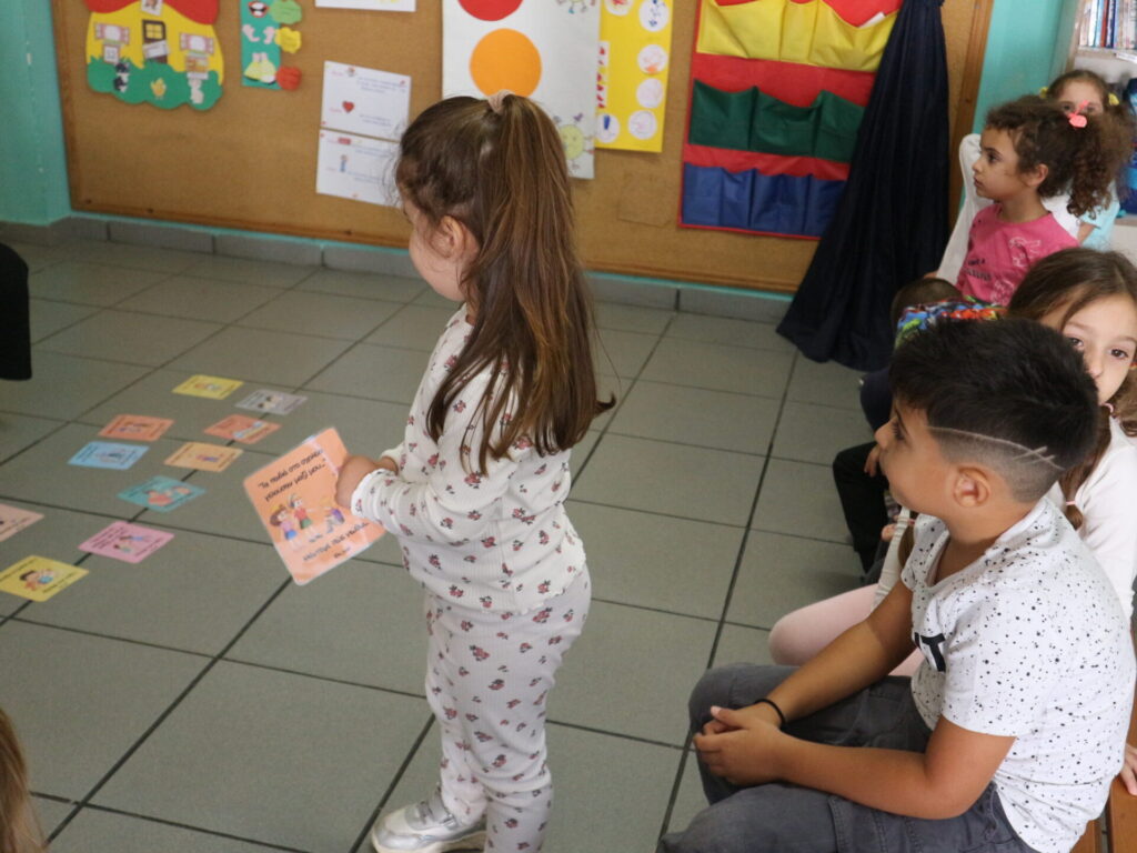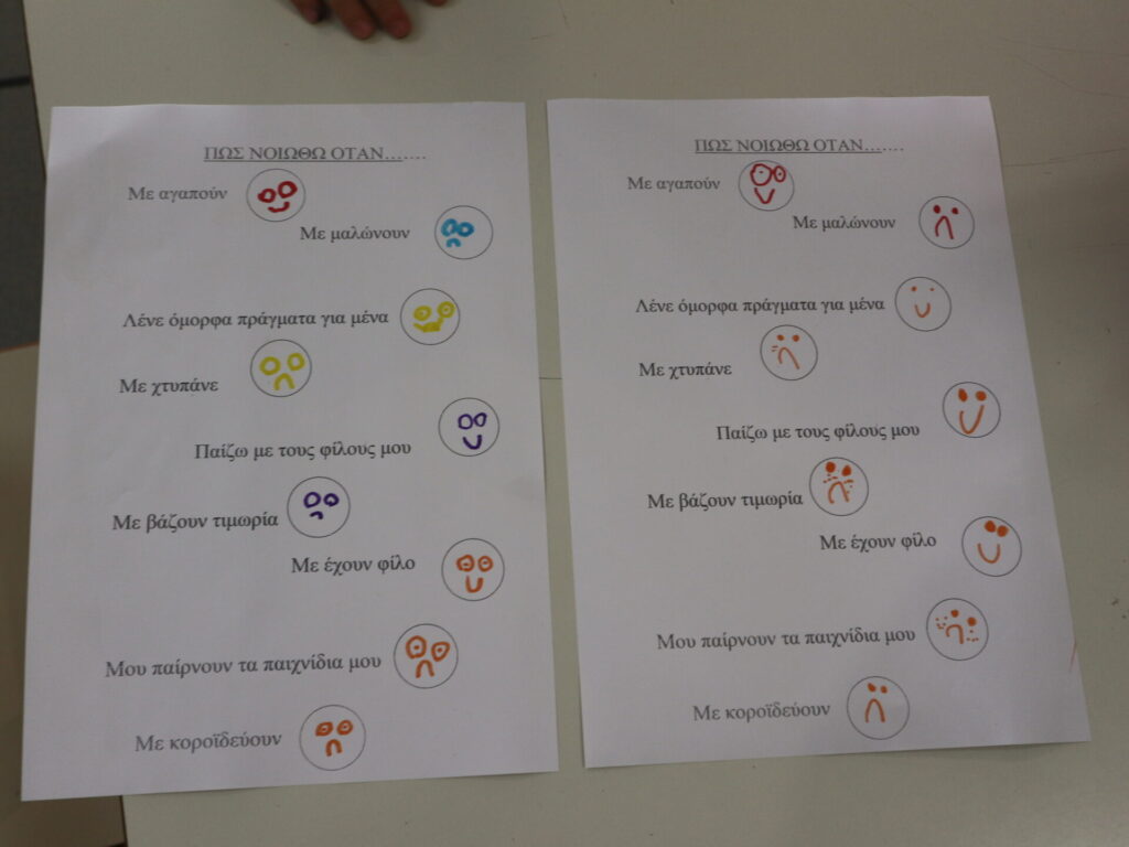 Τα παιδιά επιλέγουν μια καρτέλα , την περιγράφουν και μαντεύουν πως νιώθουν οι ήρωες .