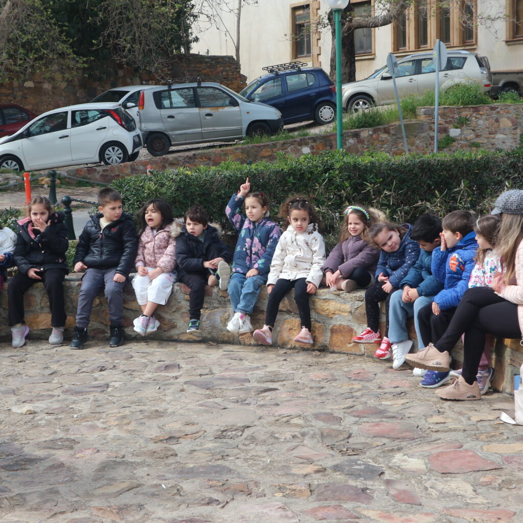 Την παραμονή της 25ης Μαρτίου, οι μικροί μαθητές του Νηπιαγωγείου μας έζησαν μια ξεχωριστή εμπειρία στο Κάστρο της Χίου. Αφού περιηγήθηκαν στα ιστορικά του σοκάκια και γνωρίσαν τις ομορφιές του, συγκεντρώθηκαν για να ακούσουν την κυρία Πόπη να τους αφηγείται με μοναδικό τρόπο το παραμύθι της “Η Χιόνη ζει στο Κάστρο της Χίου”. Η δράση μας κορυφώθηκε όταν τα παιδιά, γεμάτα κέφι, δραματοποίησαν μέρη της ιστορίας, ζωντανεύοντας το παραμύθι μέσα στον φυσικό του χώρο. Ήταν μια μέρα γεμάτη φαντασία, παιχνίδι και χαμόγελα που θα τους μείνει αξέχαστη!»