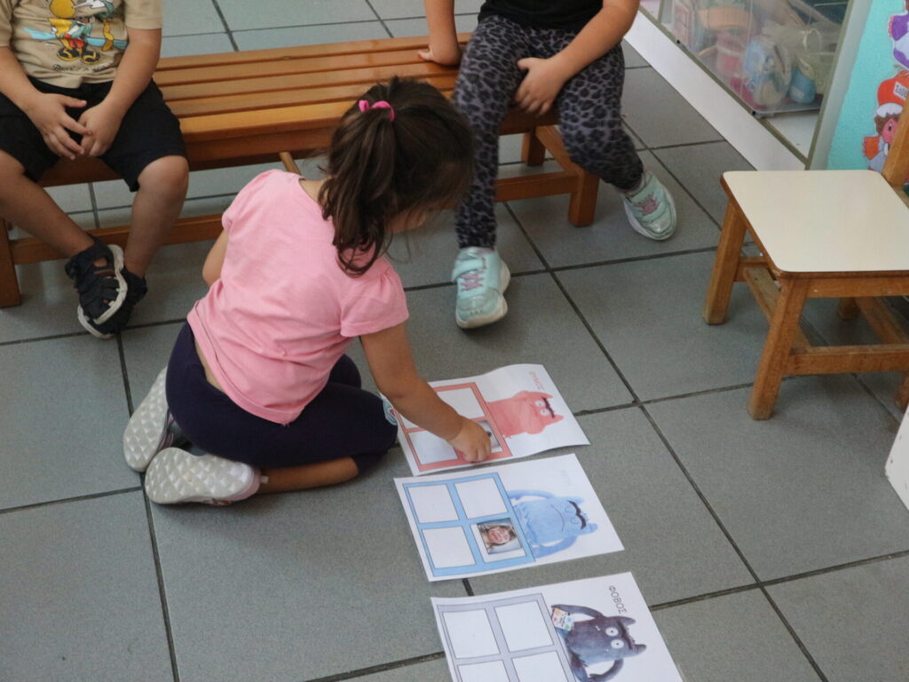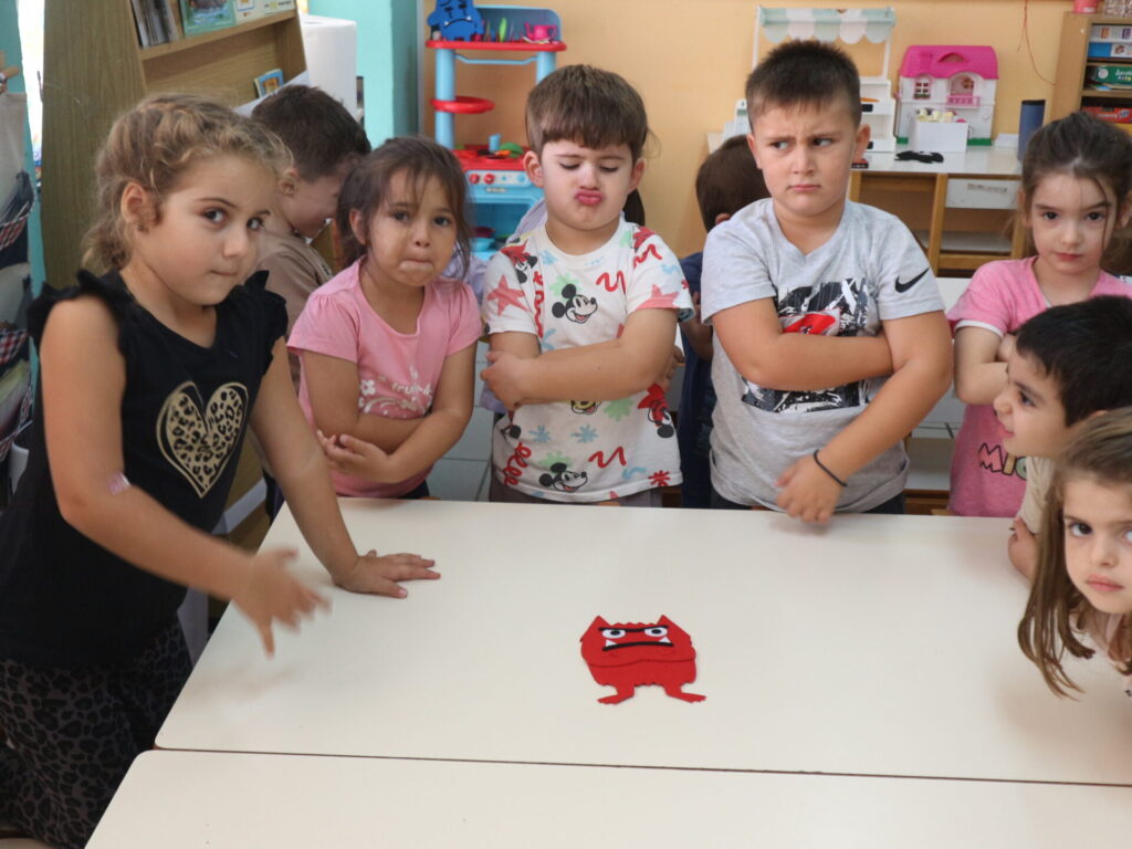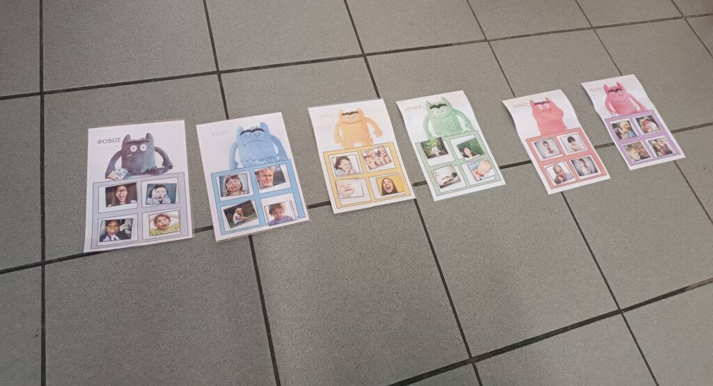 Μοιράζονται στα παιδιά καρτέλες με συμπεριφορές τις οποίες τις αναγνωρίζουν, τις περιγράφουν και στη συνέχεια τις τοποθετούν στις αντίστοιχες καρτέλες με τα τερατάκια των συναισθημάτων