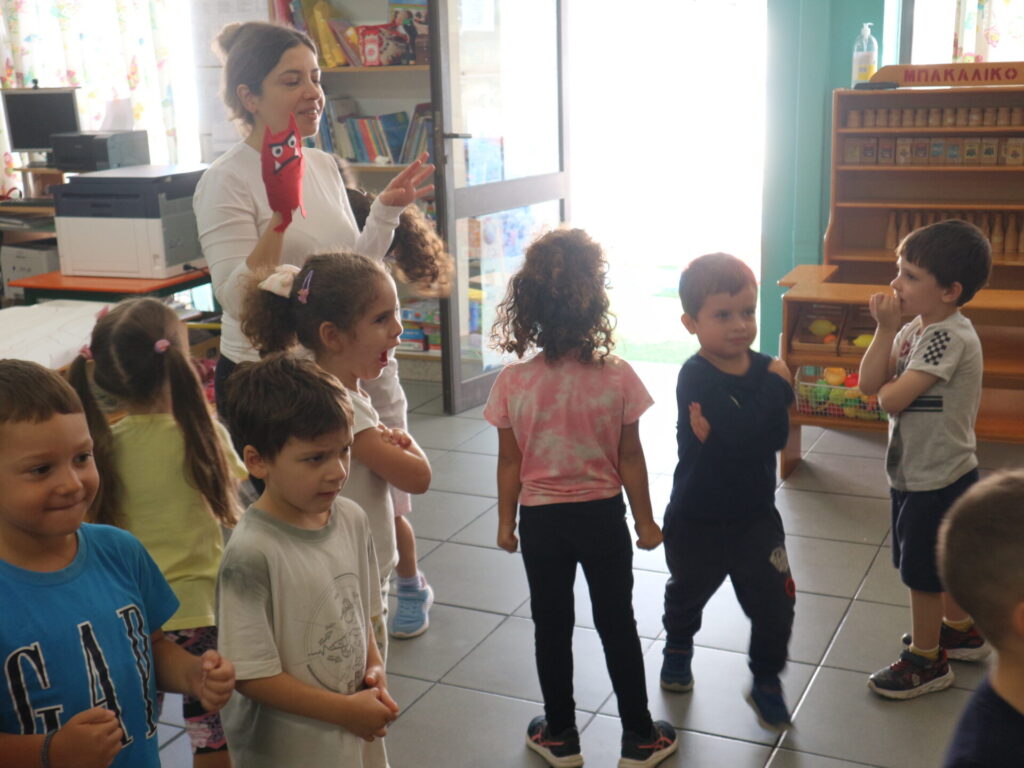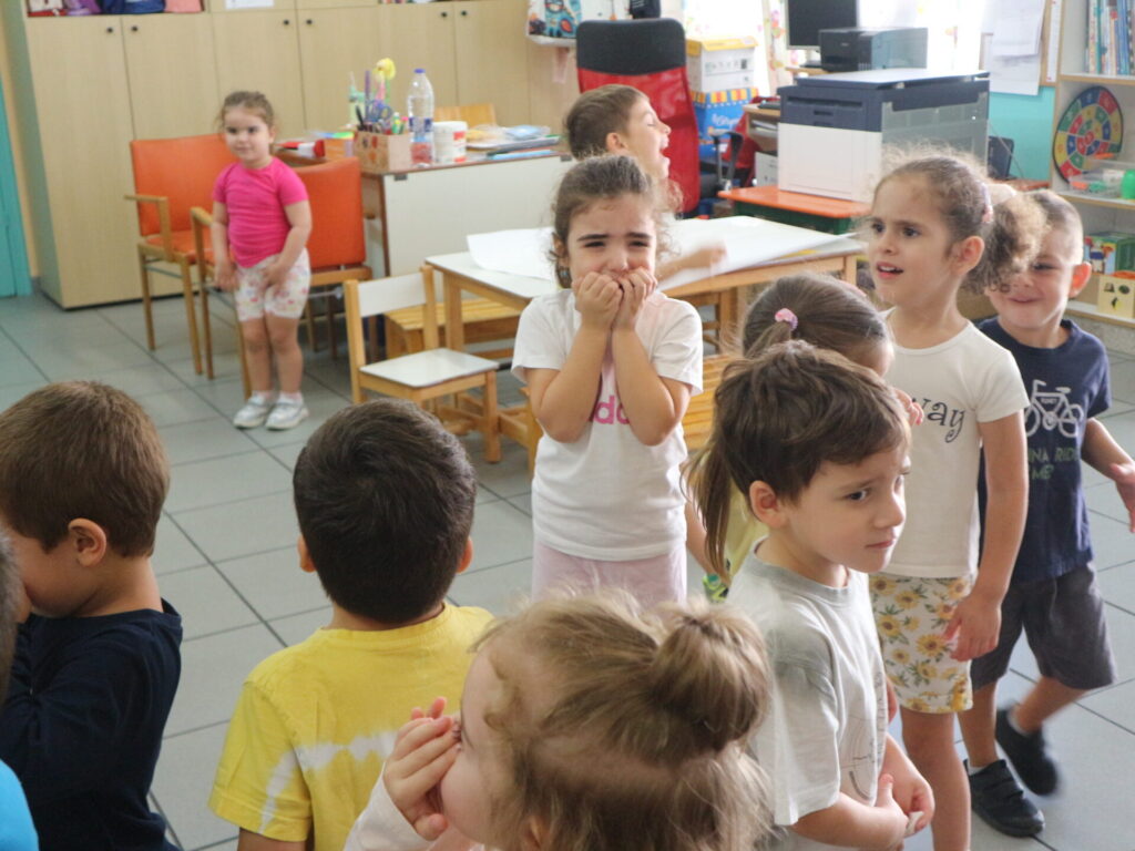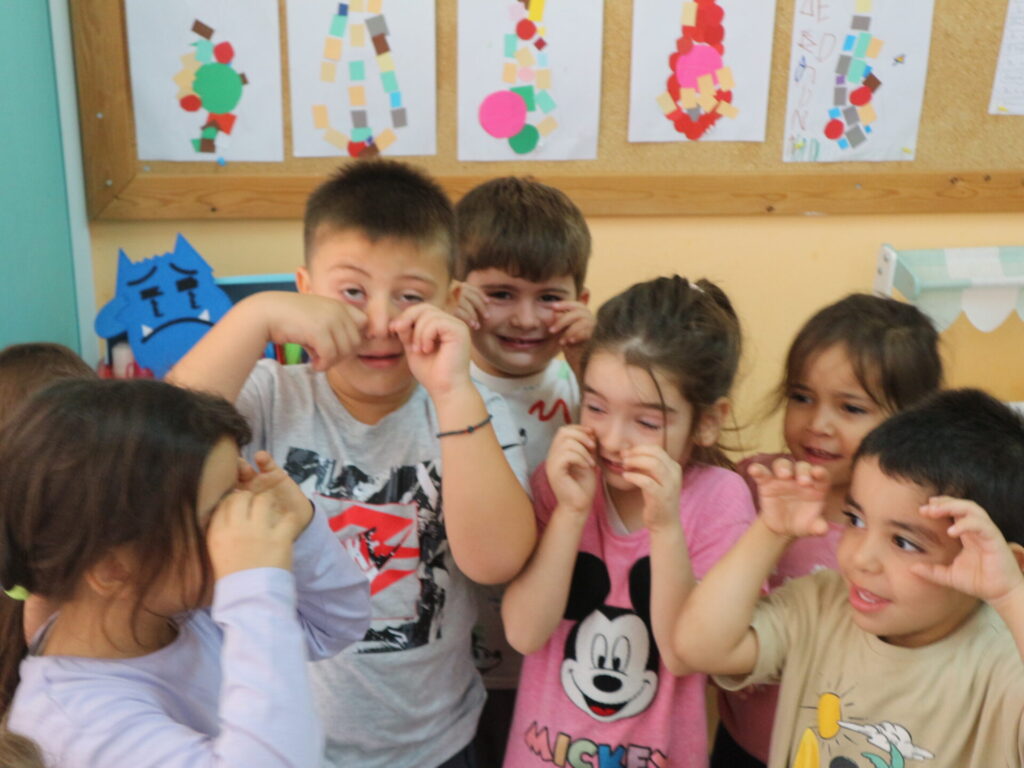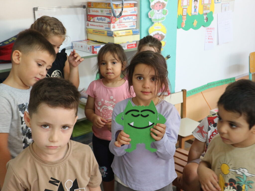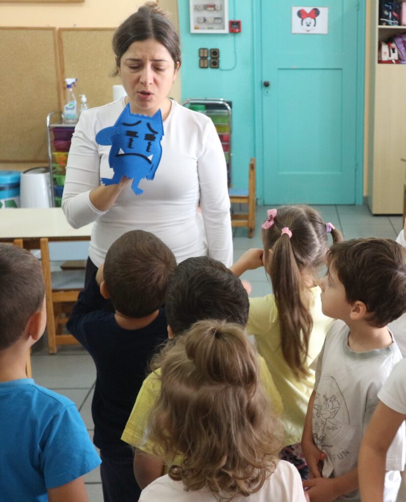 Τα παιδιά διαβάζουν το βιβλίο:<το τερατάκι των χρωμάτων> που αναφέρεται στα συναισθήματα. Στην συνέχεια συζητούν για τα συναισθήματα και μοιράζονται τις εμπειρίες τους για το πότε τα αισθάνονται.