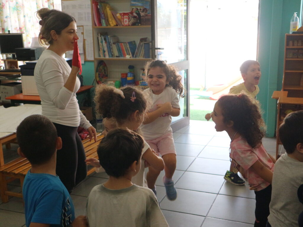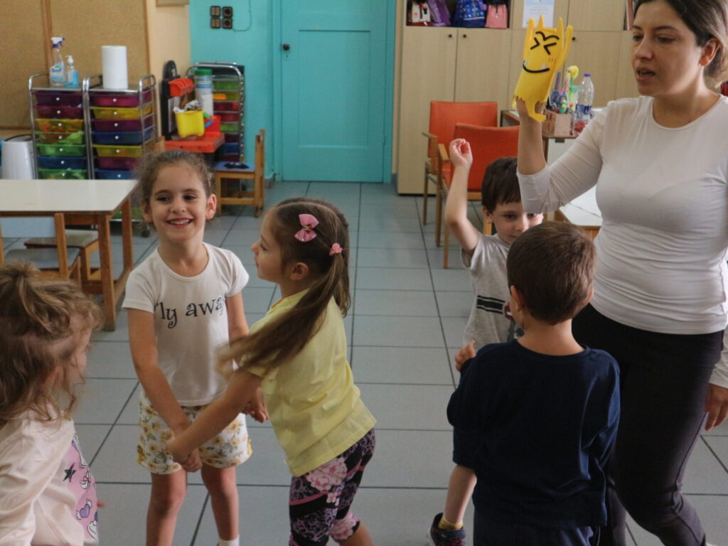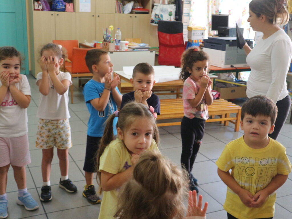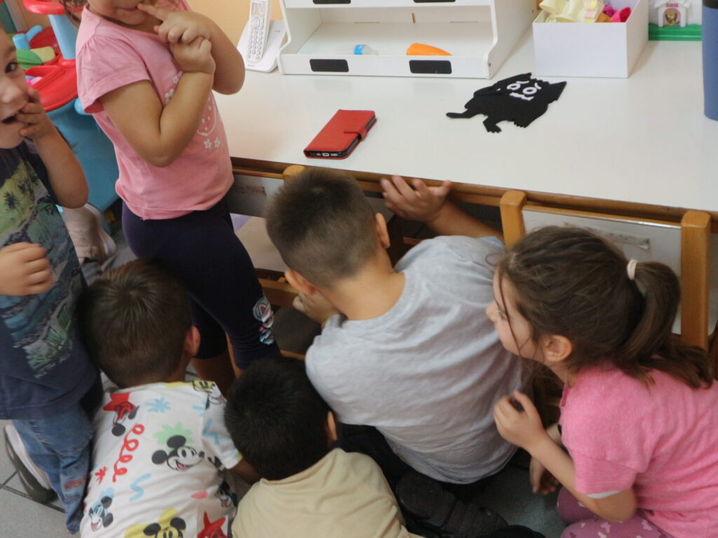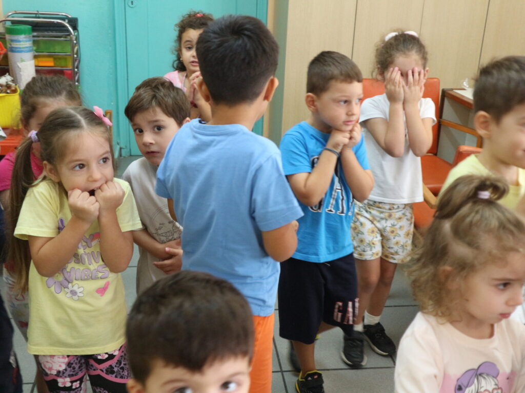 Τα παιδιά διαβάζουν το βιβλίο:<το τερατάκι των χρωμάτων> που αναφέρεται στα συναισθήματα. Στην συνέχεια συζητούν για τα συναισθήματα και μοιράζονται τις εμπειρίες τους για το πότε τα αισθάνονται.