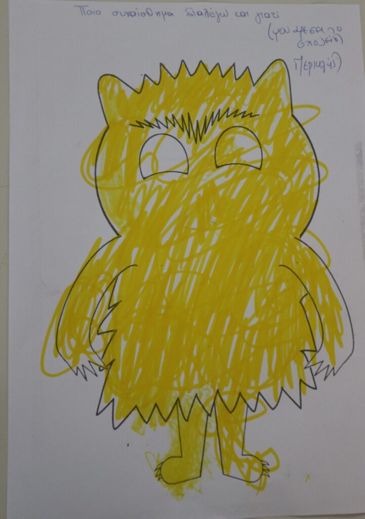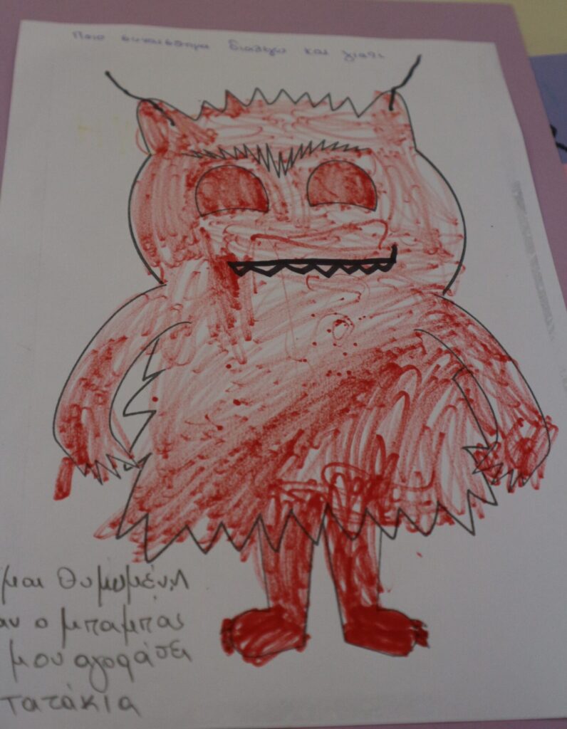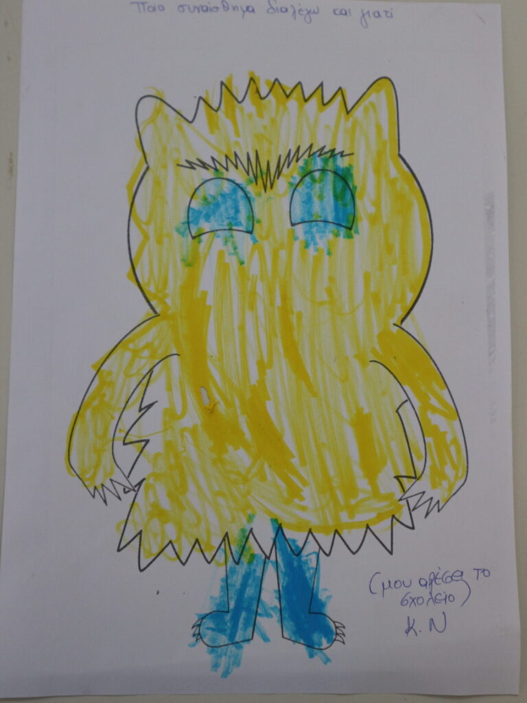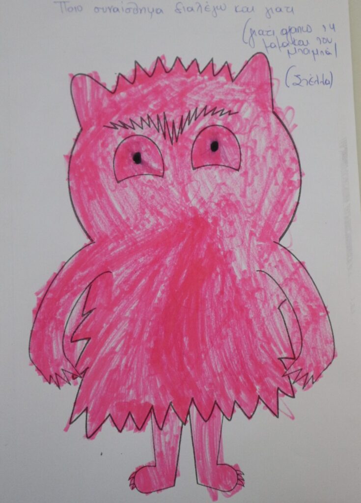 Ανάλογα με το πως αισθάνονται την συγκεκριμένη στιγμή , ζωγραφίζουν το τερατάκι με το αντίστοιχο χρώμα. Αιτιολογούν την απάντηση τους.