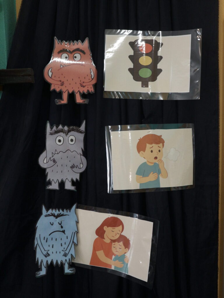 Τα παιδιά προβληματίζονται για τους τρόπους αντιμετώπισης των συναισθημάτων της λύπης, του φόβου και του θυμού. Μοιράζονται ιδέες, εμπειρίες . Ακούγονται αρκετές προτάσεις , οι οποίες καταγράφονται . Στην συνέχεια επιλέγουν από κοινού μια τεχνική , την οποία την δραματοποιούν, την οπτικοποιούν και την ενώνουν με το αντίστοιχο συναίσθημα. Για να γίνει πιο παιχνιδιάρικη η κάθε τεχνική της κάνουν ποιηματάκι
