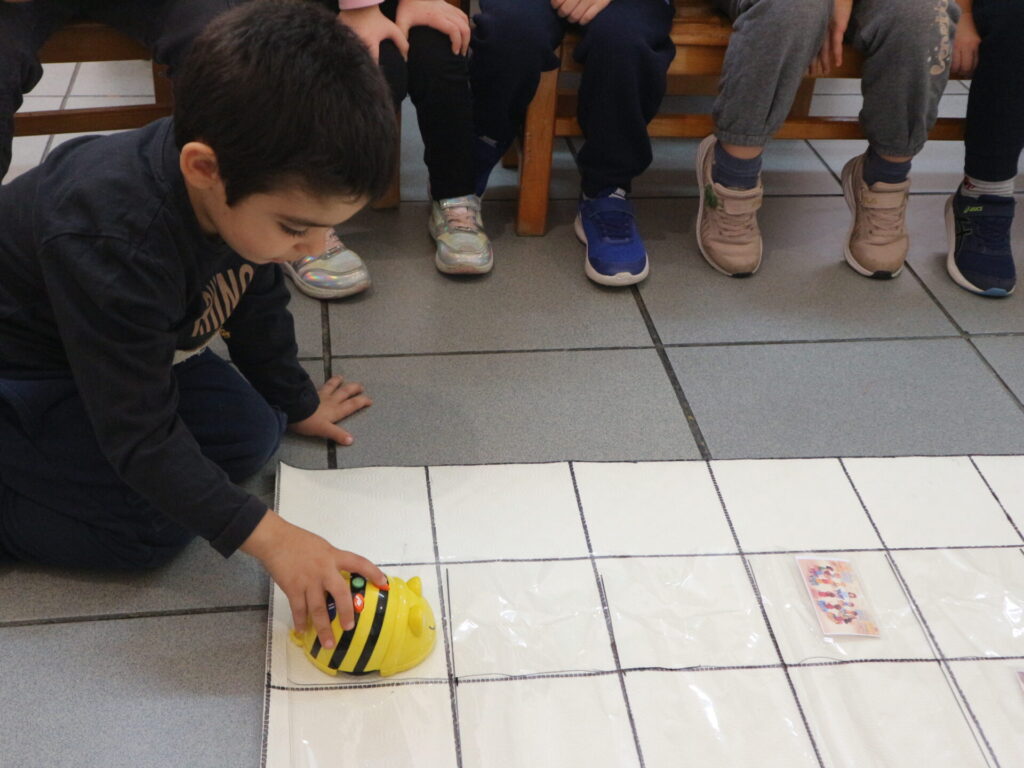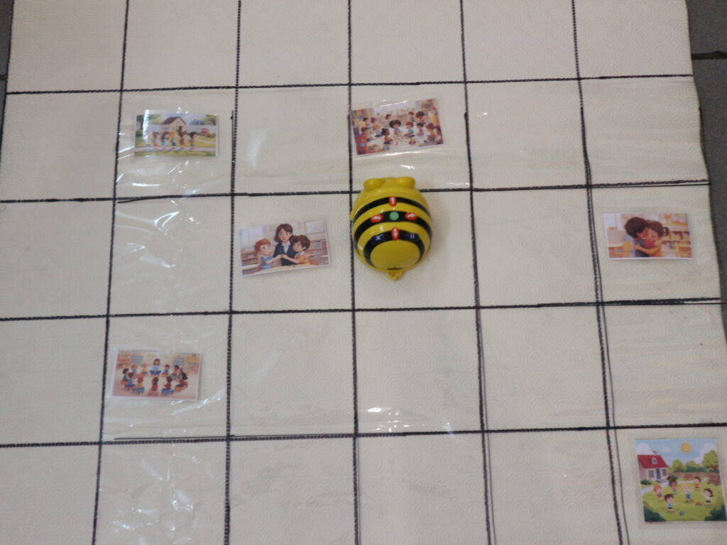 Τα παιδιά αφού παρατηρήσουν και σχολιάσουν εικόνες θετικής και αρνητικής συμπεριφοράς στο νηπιαγωγείο προγραμματίζουν το εκπαιδευτικό ρομπότ bee-bot έτσι ώστε να περάσει μόνο από τις θετικές συμπεριφορές προκειμένου να φτάσει στο σχολείο που βρίσκεται στο τέλος του πλέγματος. Τα παιδιά μαθαίνουν να ξεχωρίζουν θετικές από αρνητικές συμπεριφορές, εντοπίζουν επιπτώσεις στα συναισθήματα και ανακαλύπτουν τους κανόνες της τάξης.