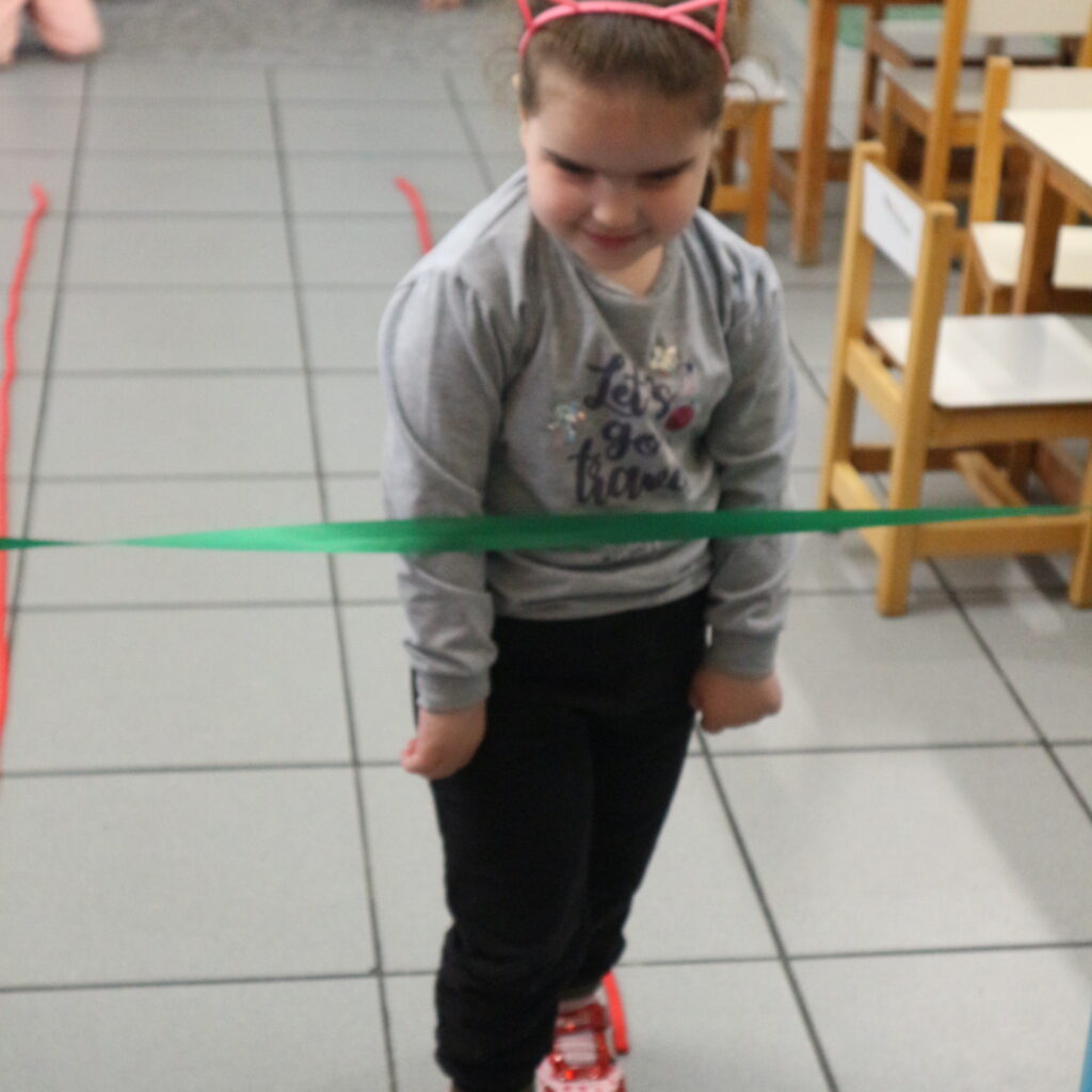 Στην τάξη φτιάχνουμε με σχοινάκια μια «Πράσινη Λεωφόρο». Στο τέλος της λεωφόρου βάζουμε μια κορδέλα (όπως στους αγώνες). Τα παιδιά, ένα-ένα «κόβουν» την κορδέλα περνώντας τη λεωφόρο με τον τρόπο που προτιμούν: περπατώντας , τρέχοντας, κάνοντας κουτσό, οδηγώντας πατίνι ή παριστάνοντας ότι κάνουν ποδήλατο.