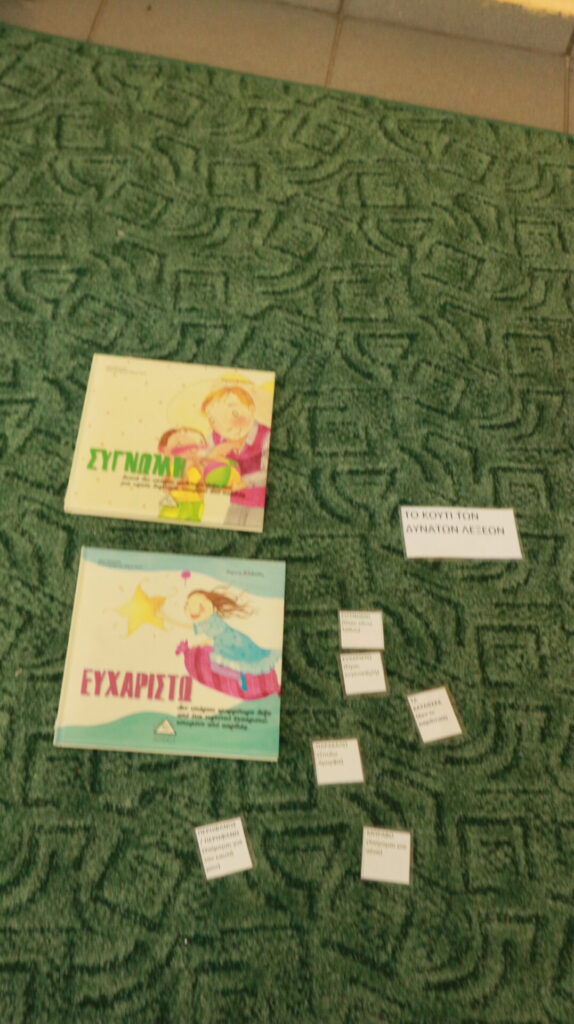 Ανάγνωση & Συζήτηση: Ξεκινήσαμε το ταξίδι μας διαβάζοντας τα βιβλία «Συγγνώμη» και «Ευχαριστώ». Μέσα από τις ιστορίες τους, ανακαλύψαμε πώς αυτές οι «μαγικές λέξεις» μπορούν να γεφυρώσουν διαφορές και να ομορφύνουν τις σχέσεις μας.