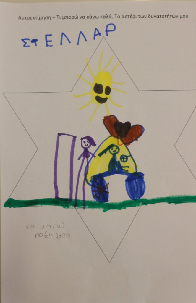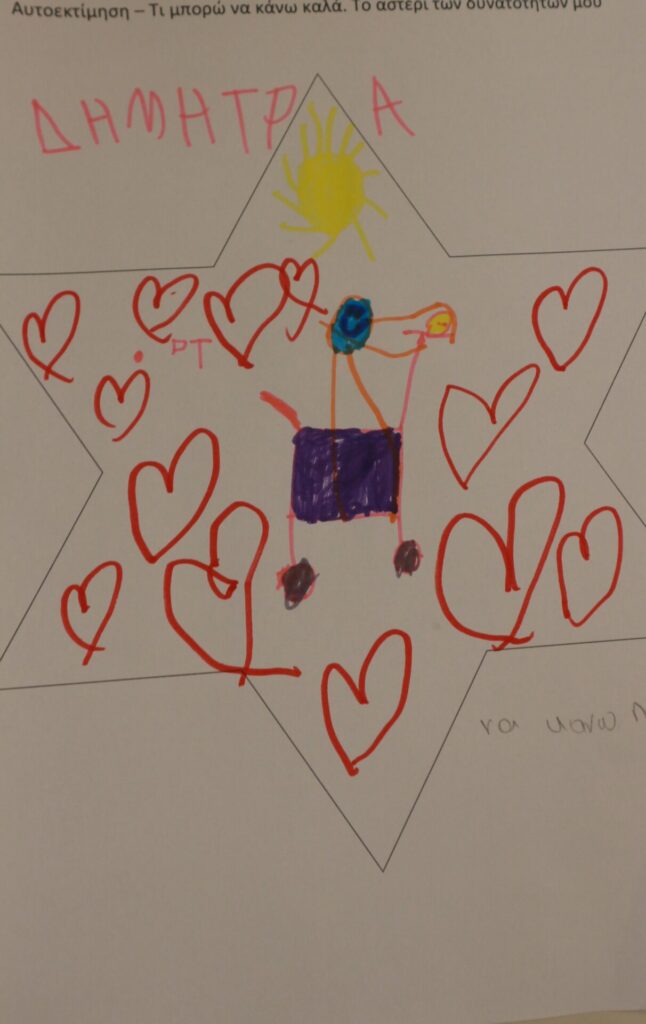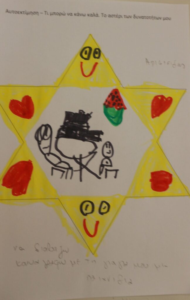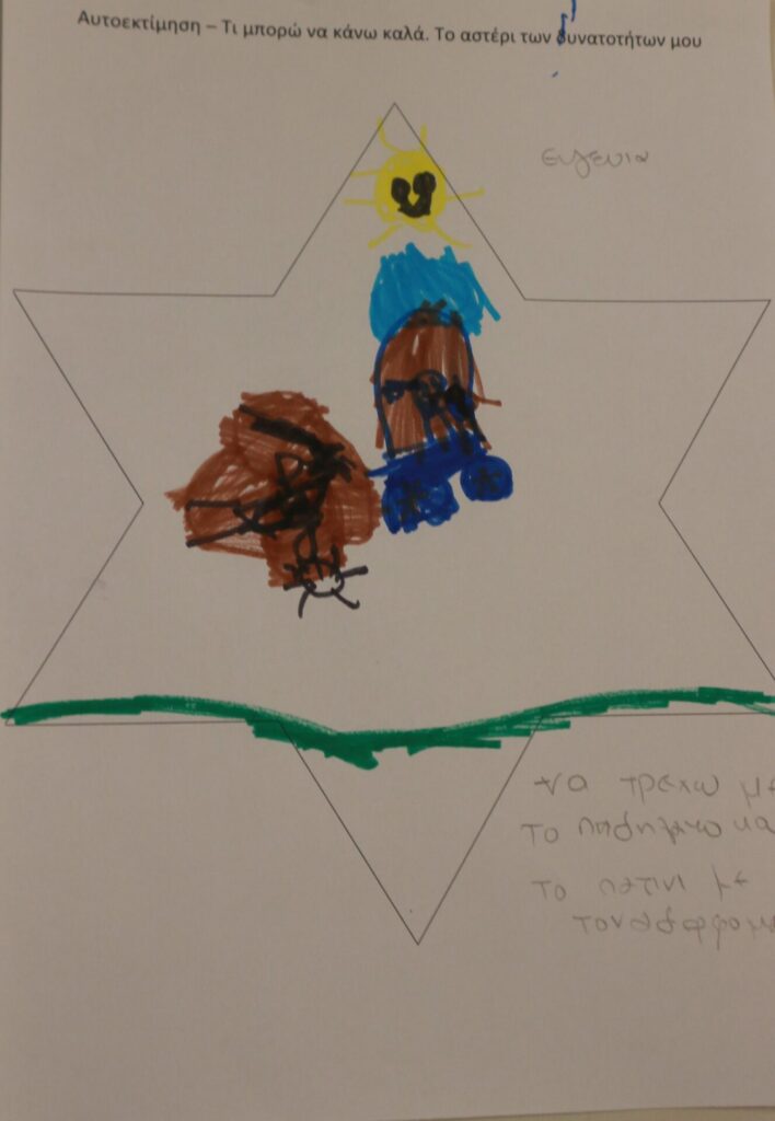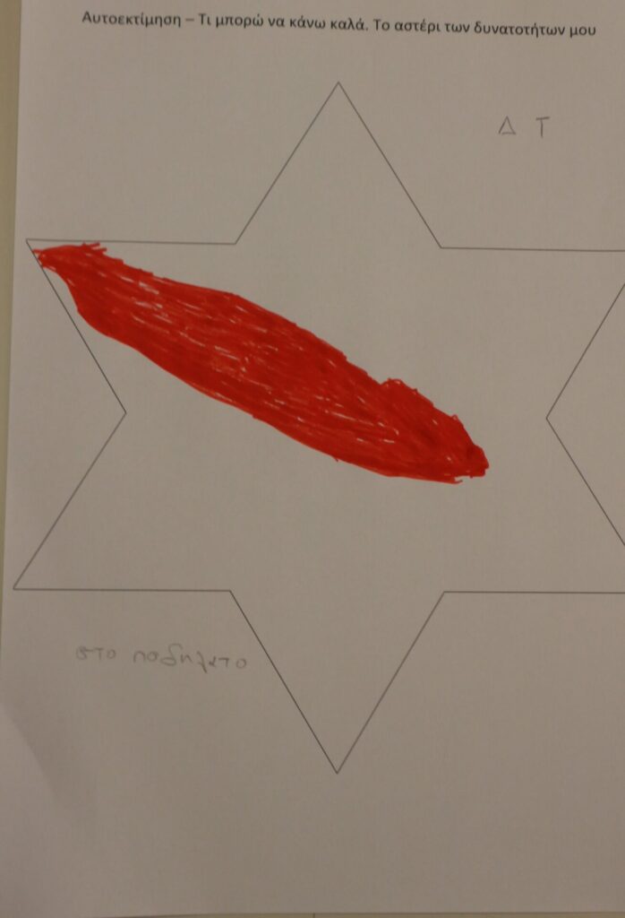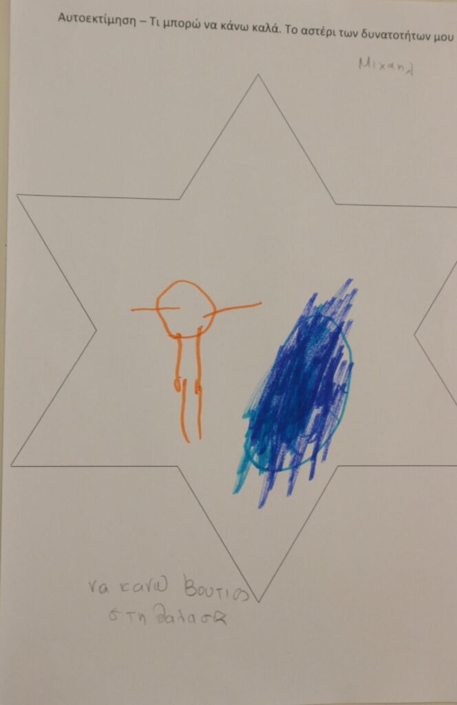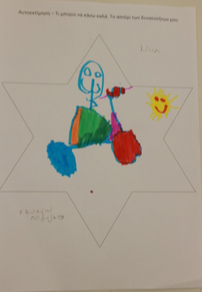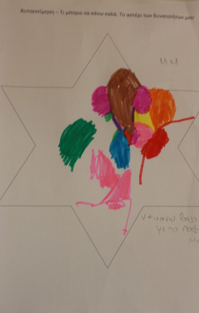 Δημιουργική Έκφραση: Η δράση ολοκληρώθηκε με τα παιδιά να αποτυπώνουν τα επιτεύγματά τους μέσα σε ένα «αστέρι». Ζωγράφισαν με καμάρι όλα εκείνα που τα κάνουν μοναδικά, ενισχύοντας το αίσθημα της ικανότητας και της συνεργασίας.