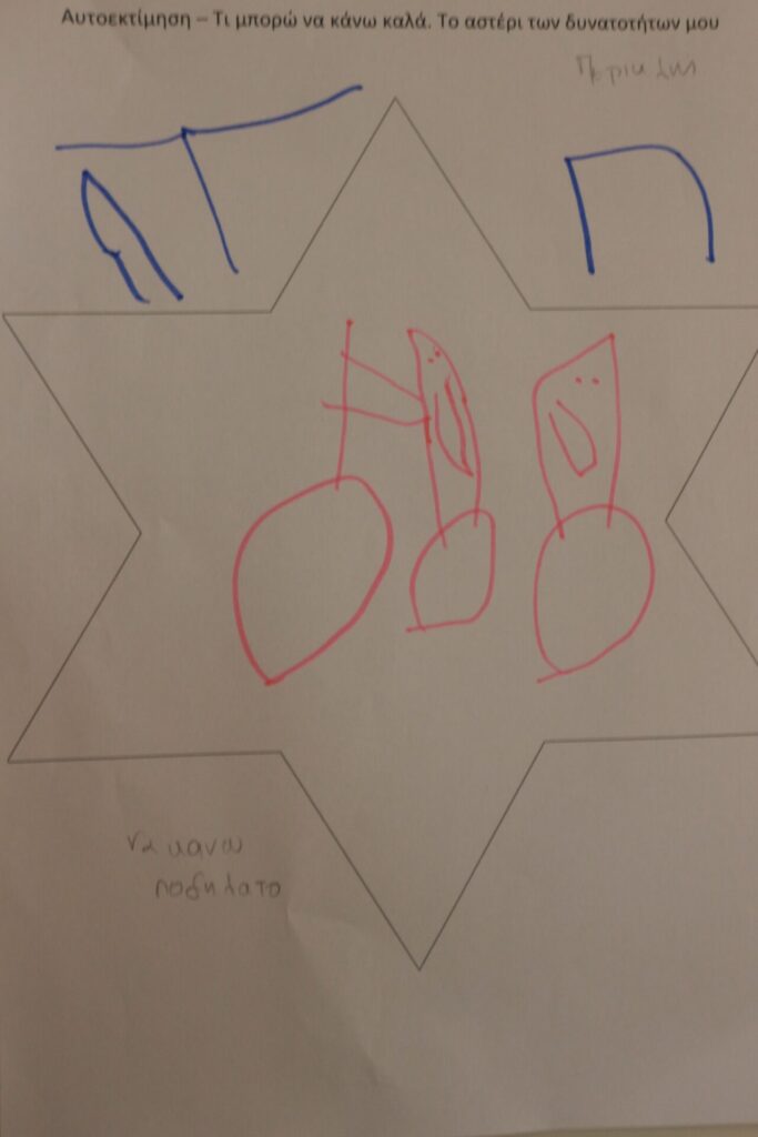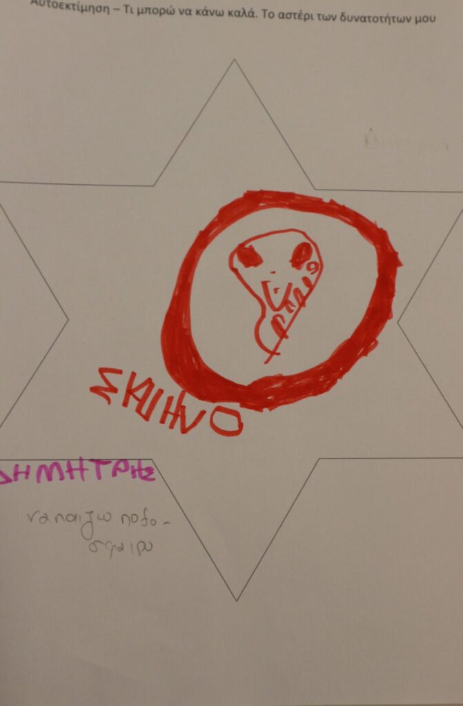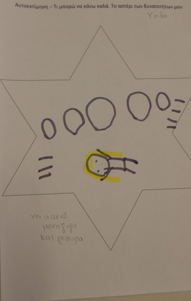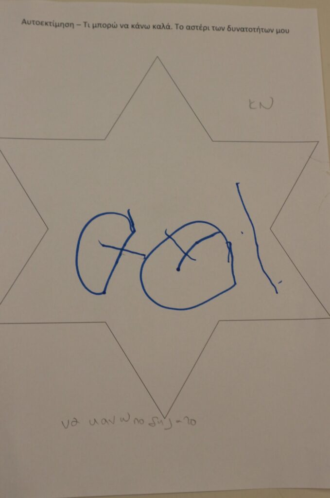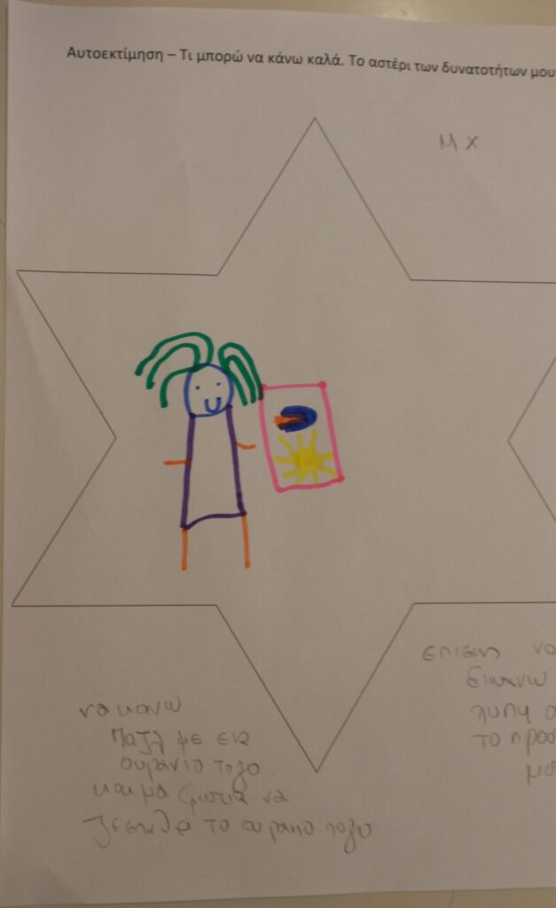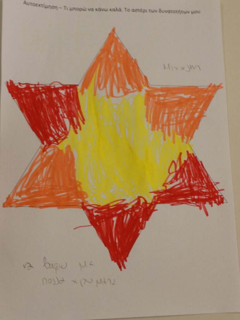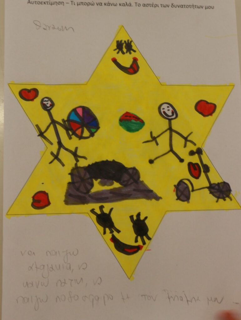 Δημιουργική Έκφραση: Η δράση ολοκληρώθηκε με τα παιδιά να αποτυπώνουν τα επιτεύγματά τους μέσα σε ένα «αστέρι». Ζωγράφισαν με καμάρι όλα εκείνα που τα κάνουν μοναδικά, ενισχύοντας το αίσθημα της ικανότητας και της συνεργασίας.