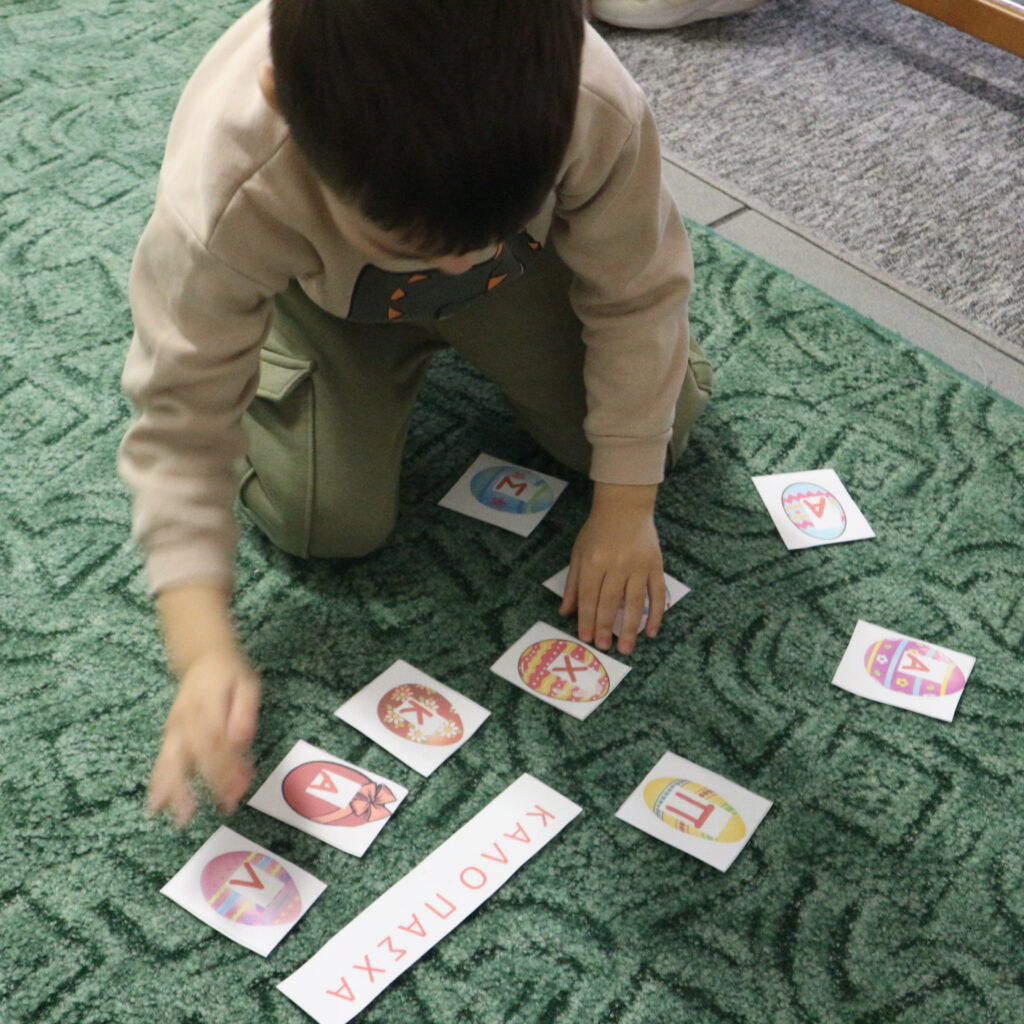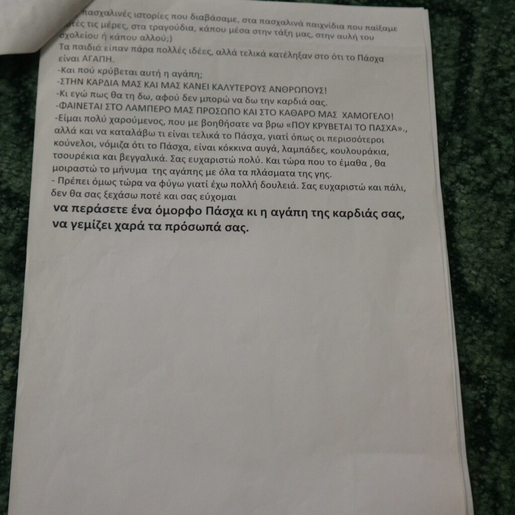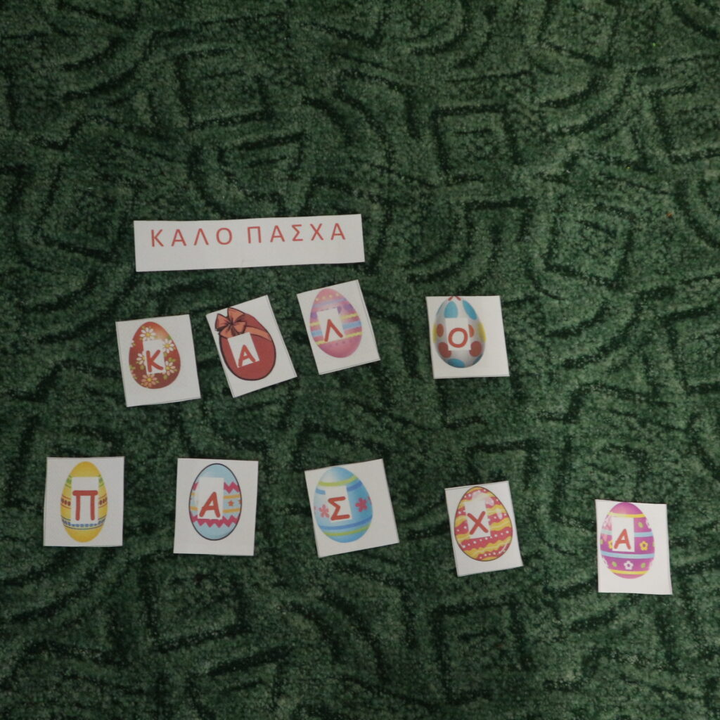 Βάζουν στην σειρα τα γράμματα και συνθέτουν την πρόταση: ΚΑΛΟ ΠΑΣΧΑ
