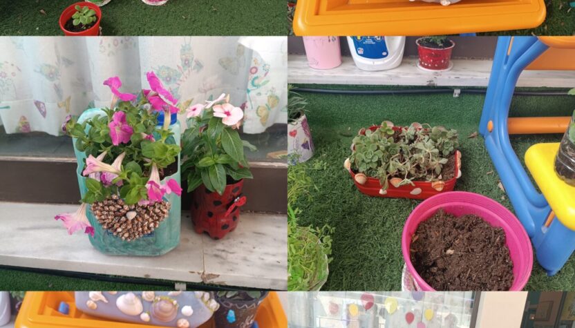 Στην αυλή του σχολείου μας δημιουργήσαμε όμορφες γλάστρες με λουλούδια, χρησιμοποιώντας ανακυκλώσιμα και επαναχρησιμοποιούμενα υλικά. Με αγάπη και φροντίδα τα παιδιά περιποιούνται καθημερινά τα φυτά μας, κάνοντας το σχολείο μας πιο όμορφο, πολύχρωμο και φιλικό προς το περιβάλλον.