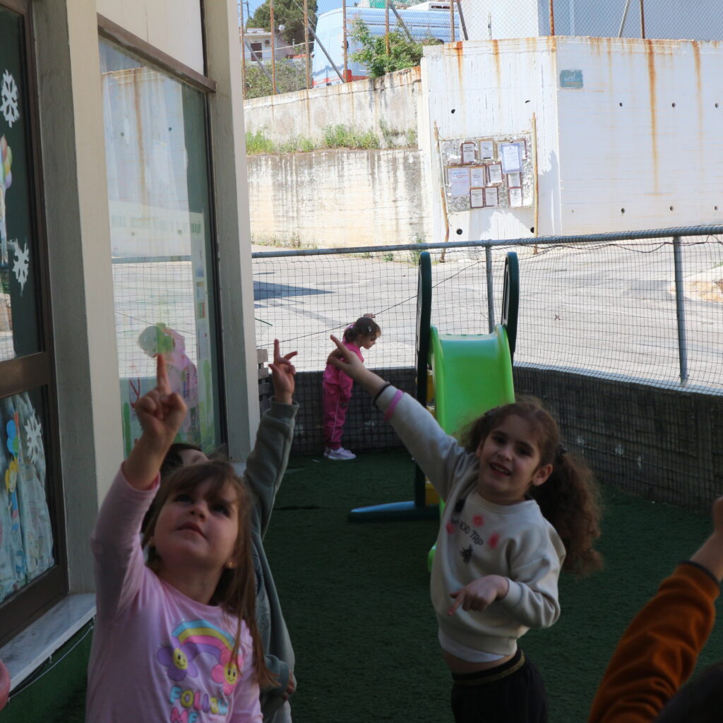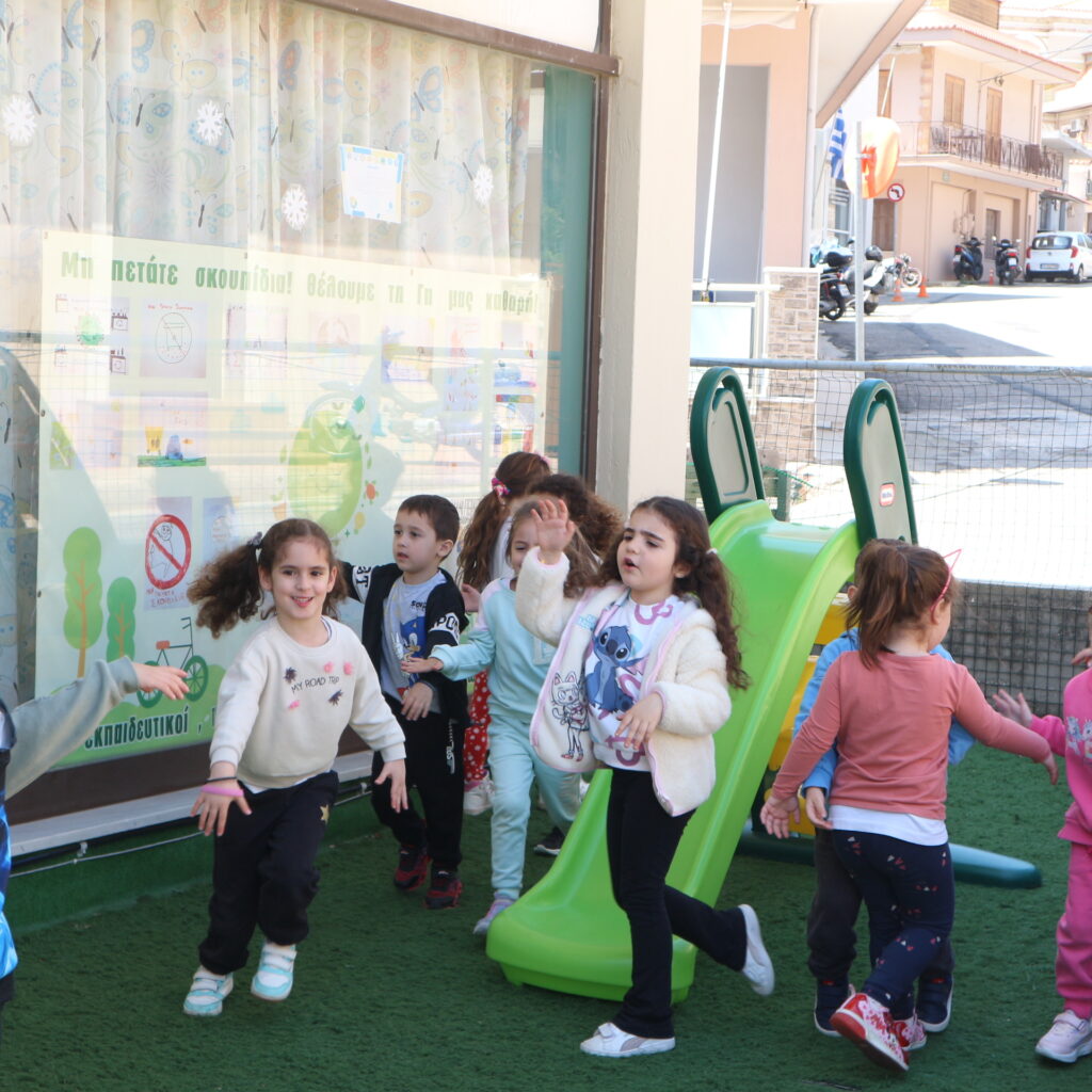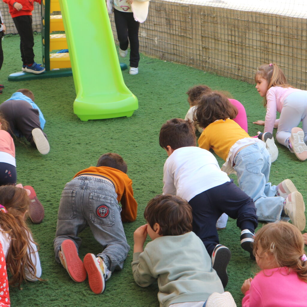 Τα παιδιά αναζητούν έντομα στην αυλή του νηπιαγωγείου