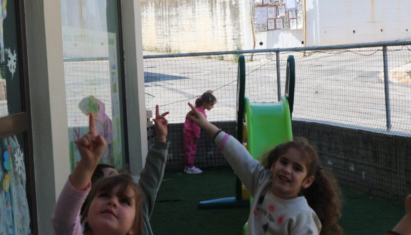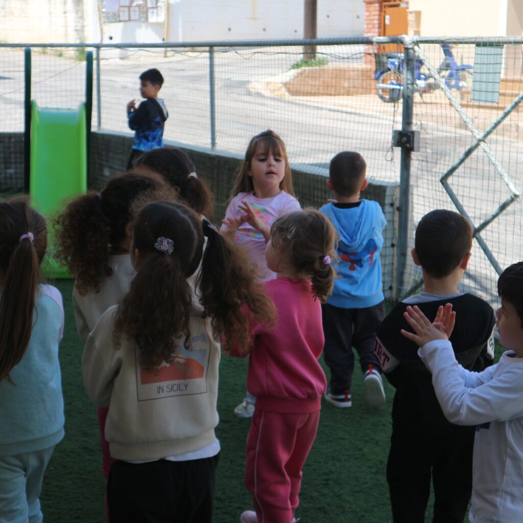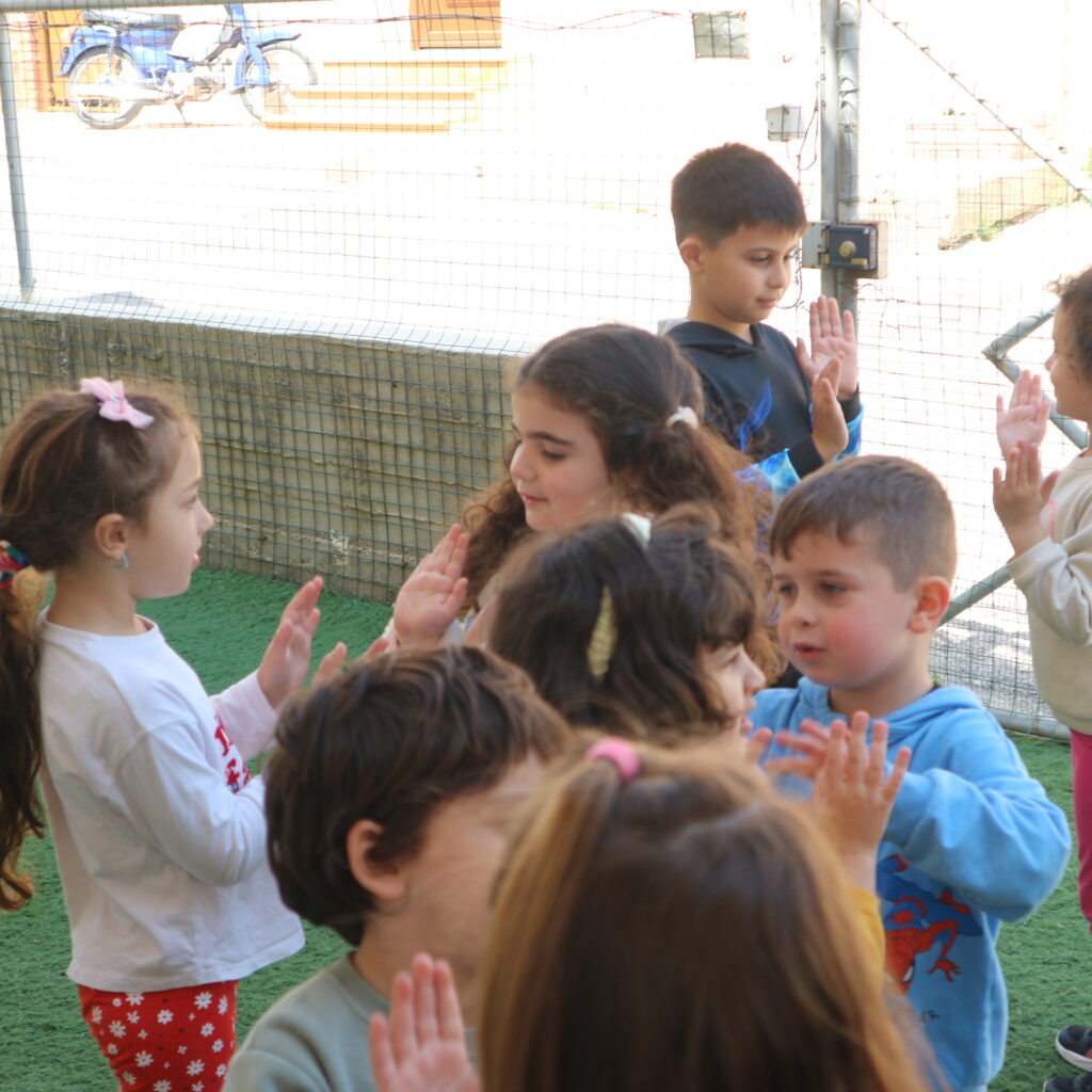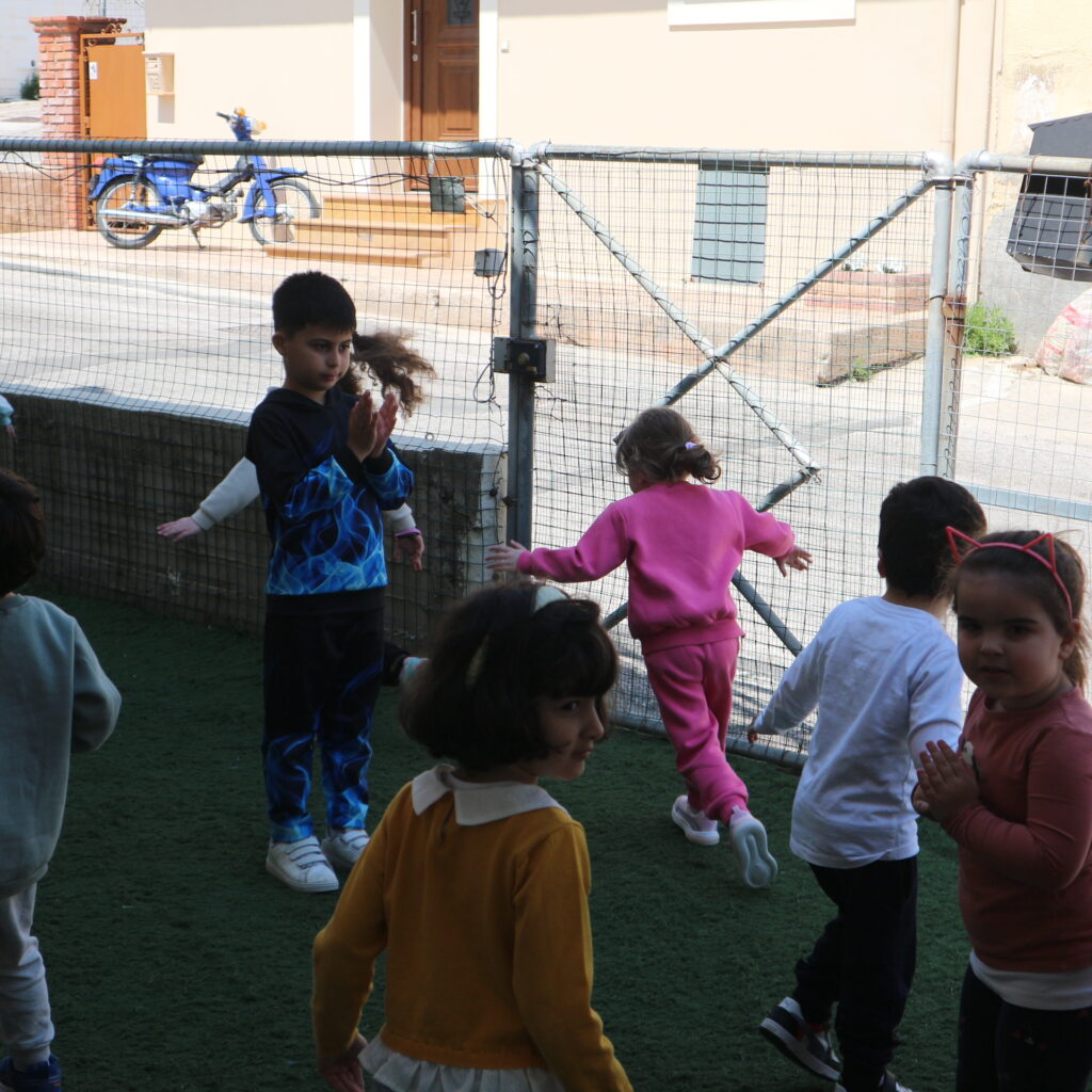 Τα παιδιά αναζητούν έντομα στην αυλή του νηπιαγωγείου